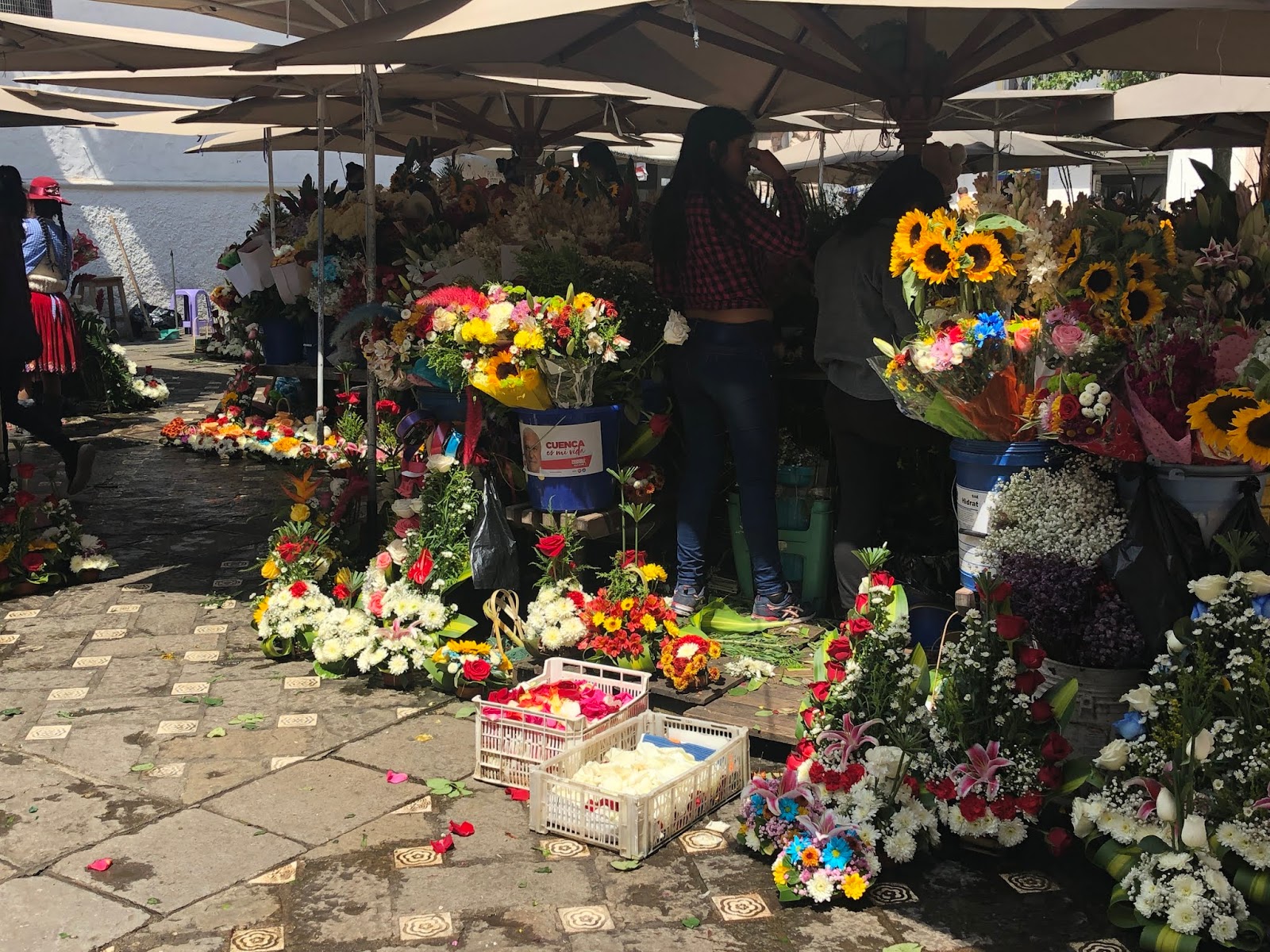 The indigenous here wear different skirts than the Otavalos. The skirts in Cuenca are shorter and the number of braids is a big deal (one for pure indigenous, two for mixed with Spanish). The markets here are more produce based than craft based like in Otavalo, though the Otavalos have found Cuenca as well and bring their goods with them.